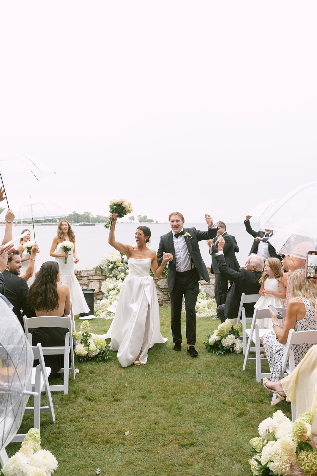 Through it all, Anjoli and Austin remained centered. Anjoli looked at me and said, “Rachel, all I want to do is walk down that aisle.” So we made it happen. We reset the ceremony chairs and florals, and the celebration continued. As the sun emerged, guests rallied wholeheartedly in showing up with full support. Thunder rolled as Anjoli and Austin were pronounced married, and the crowd erupted in cheers.